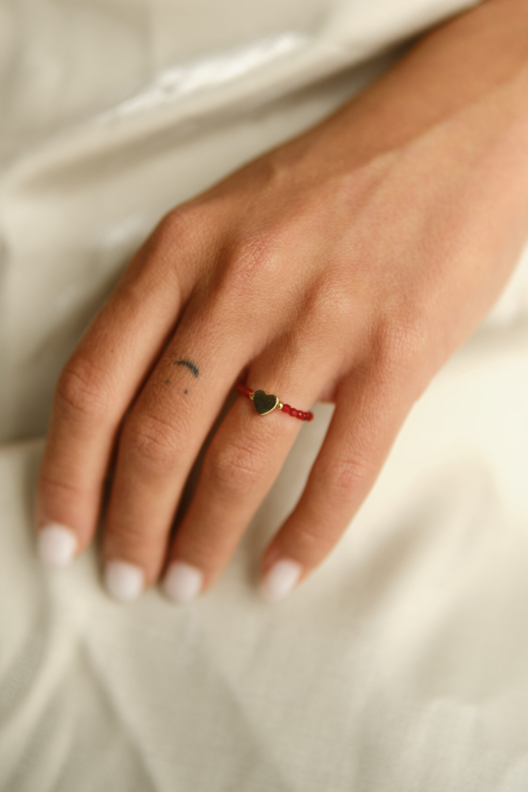 Valentýnský speciál prstýnek ze zářivých zirkonů se srdíčkem z chirurgické oceli je jemným symbolem lásky, který můžeš vrstvit a kombinovat se svými oblíbenými kousky z Bounty Boho.